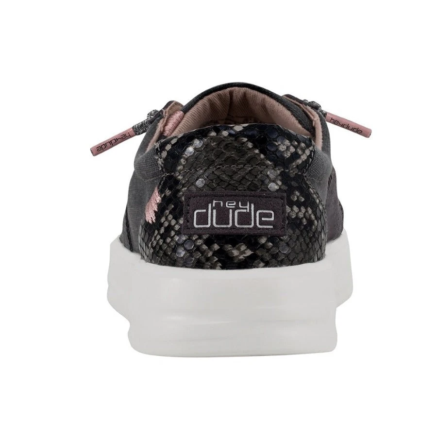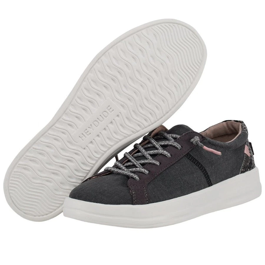Classic—but not common. The Karina collection features a cotton slip-on sneaker with an iconic shape and sturdy, comfy HEYDUDE construction. Plus custom-look details. Slip this on and head on out to take on any day. Featuring our easy-on system with no-tie, elastic laces and an ultralight outsole to make even your busiest days, at ease.Â