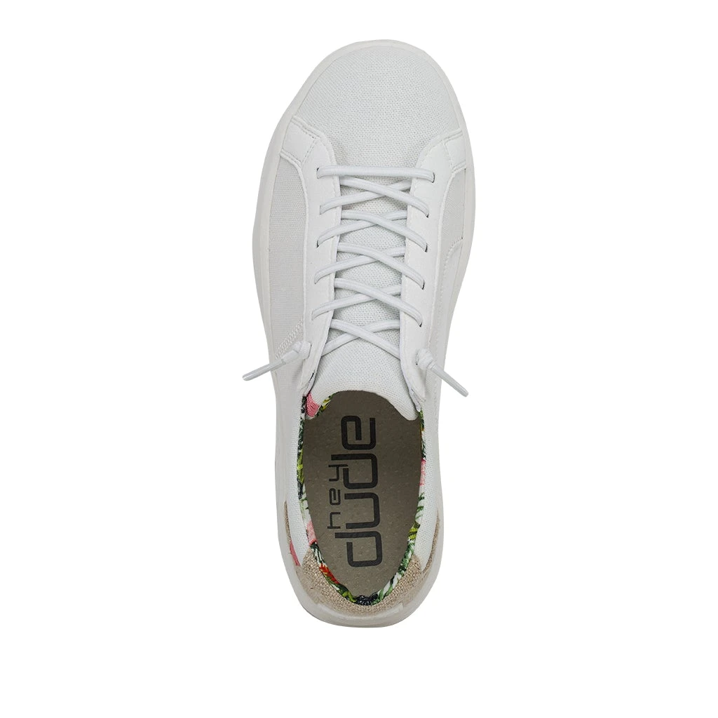 Classic—but not common. The Karina collection features a cotton slip-on sneaker with an iconic shape and sturdy, comfy HEYDUDE construction. Plus custom-look details. Slip this on and head on out to take on any day. Featuring our easy-on system with no-tie, elastic laces and an ultralight outsole to make even your busiest days, at ease.Â