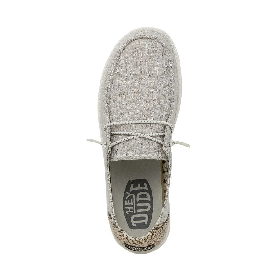 Our most popular moc meets soft chambray-cotton throughout. The Wendy Chambray collection embodies the Hey Dude lifestyle by combining our passion for comfort and quality. Created with a soft, chambray-blend upper, finished off with an easy-on, elastic lacing system and an ultralight outsole for extra comfort. This design is perfect for all day wear.Â