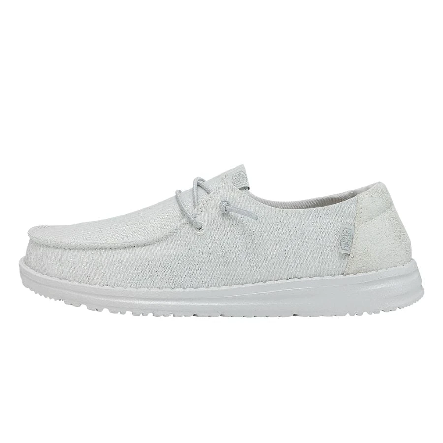 Time to smile for the camera with the sparkling Wendy Glitter collection! Featuring a durable, metallic textile upper in front of a fun glittery heel, and shines with an extra layer of foot-hugging foam. Lined with a light cotton-blend lining for lustrous strides. Finished off on an ultralight outsole with our easy-on, elastic lacing system. You’ve got one red-carpet ready shoe.
