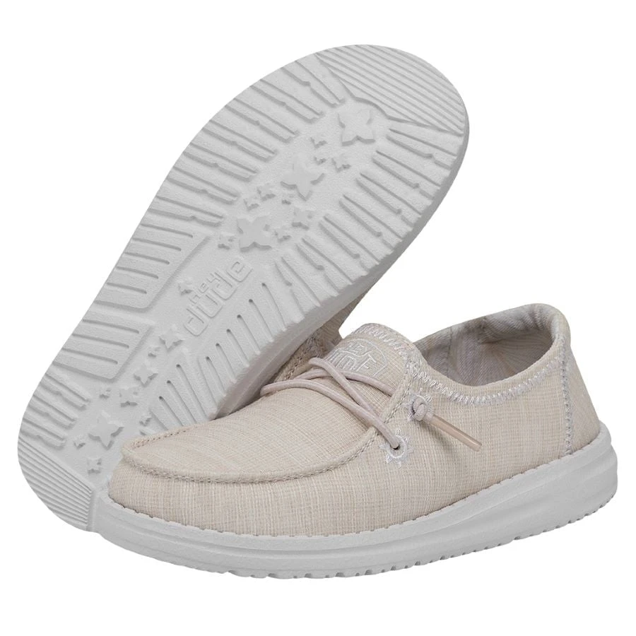 The Wendy Youth Star collection features the perfect shoe for her with plenty to love! Featuring a textile, woven upper and lined with a breathable, cotton-blend lining for all day play! Extra support from the tried-and-true lightweight outsole and no-tie, elastic woven laces carries her little feet to the stars and back! And that subtle extra stitching? The perfect detail for starry-eyed style.